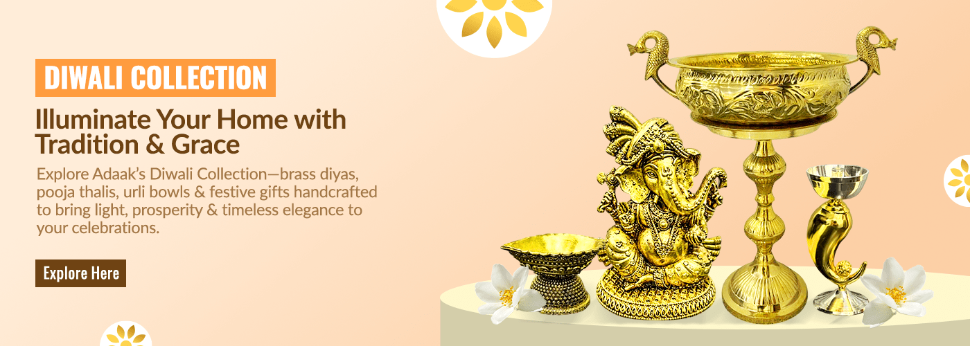 Welcome to Adaak, your destination for timeless artistry in brass, copper, and fusion crafts. Each piece in our collection is more than just décor – it’s a story of tradition, design, and craftsmanship. From premium brass idols, pooja essentials, and festive décor to heritage serveware, drinkware, and unique gifting ideas, Adaak brings heritage into modern homes with elegance.