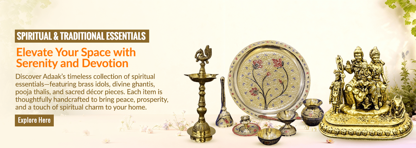 Welcome to Adaak, your destination for timeless artistry in brass, copper, and fusion crafts. Each piece in our collection is more than just décor – it’s a story of tradition, design, and craftsmanship. From premium brass idols, pooja essentials, and festive décor to heritage serveware, drinkware, and unique gifting ideas, Adaak brings heritage into modern homes with elegance.