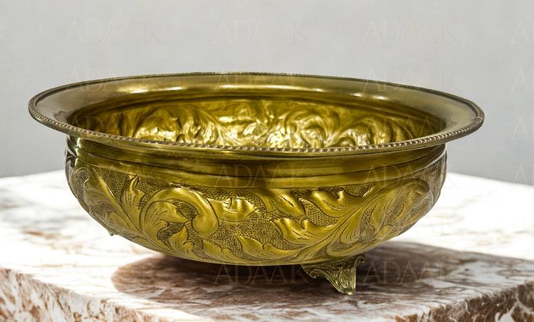 Yes, this brass centerpiece bowl is ideal for living rooms, entrances, and pooja spaces, creating a traditional yet elegant ambiance. - Is Adaak selling brass bowls for sale online? Absolutely, Adaak offers brass bowls for sale online, including this handcrafted floral engraving bowl suitable for décor, rituals, and gifting.