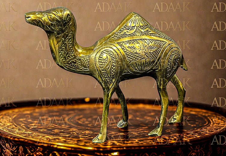 Discover elegance and craftsmanship with Adaak's Desert Grace - Camel. This exquisite brass camel statue is perfect as a camel statue for home, adding a touch of luxury to any decor. Handcrafted with attention to detail, this metal camel statue embodies artistry and sophistication. Ideal as a gift or centerpiece, the brass camel figurine enhances living spaces with timeless charm. Choose Adaak for unique decor that combines tradition, quality, and style effortlessly.