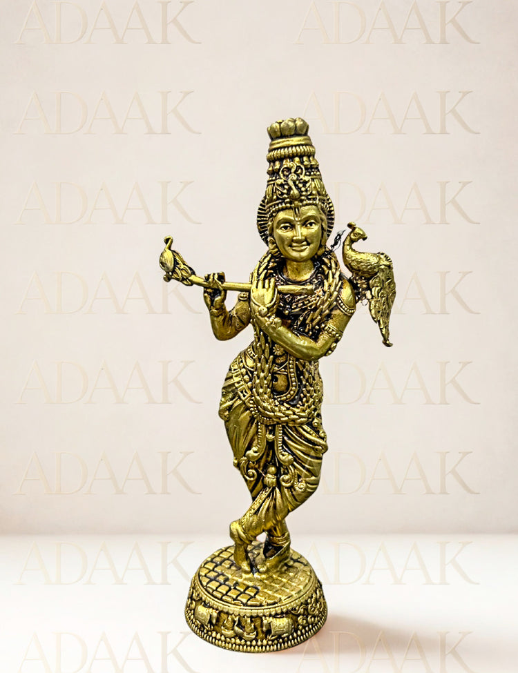 At Adaak, we select devotional icons where the sculptural detail speaks to the highest level of artistry, as seen in this Lord Krishna idol. The complexity of the casting, especially in the adornments and the flute, demonstrates superior metal art execution. Forged from high-quality, substantial brass, this piece has the weight and permanence worthy of a sacred object. Choosing this Krishna murti from Adaak ensures you receive an artifact where intricate design meets spiritual depth, serving beautifully as both a Pooja essential and a refined decorative accent.