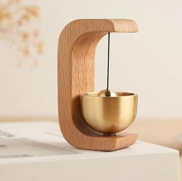 Bring harmony, elegance, and a touch of Zen into your space with this beautifully crafted table bell. Designed with a smooth beechwood frame and a premium polished brass bell, this piece blends modern minimalism with traditional charm. The suspended bell creates a soothing chime when gently struck, making it perfect for meditation, mindful breaks, or simply as a unique decorative accent.