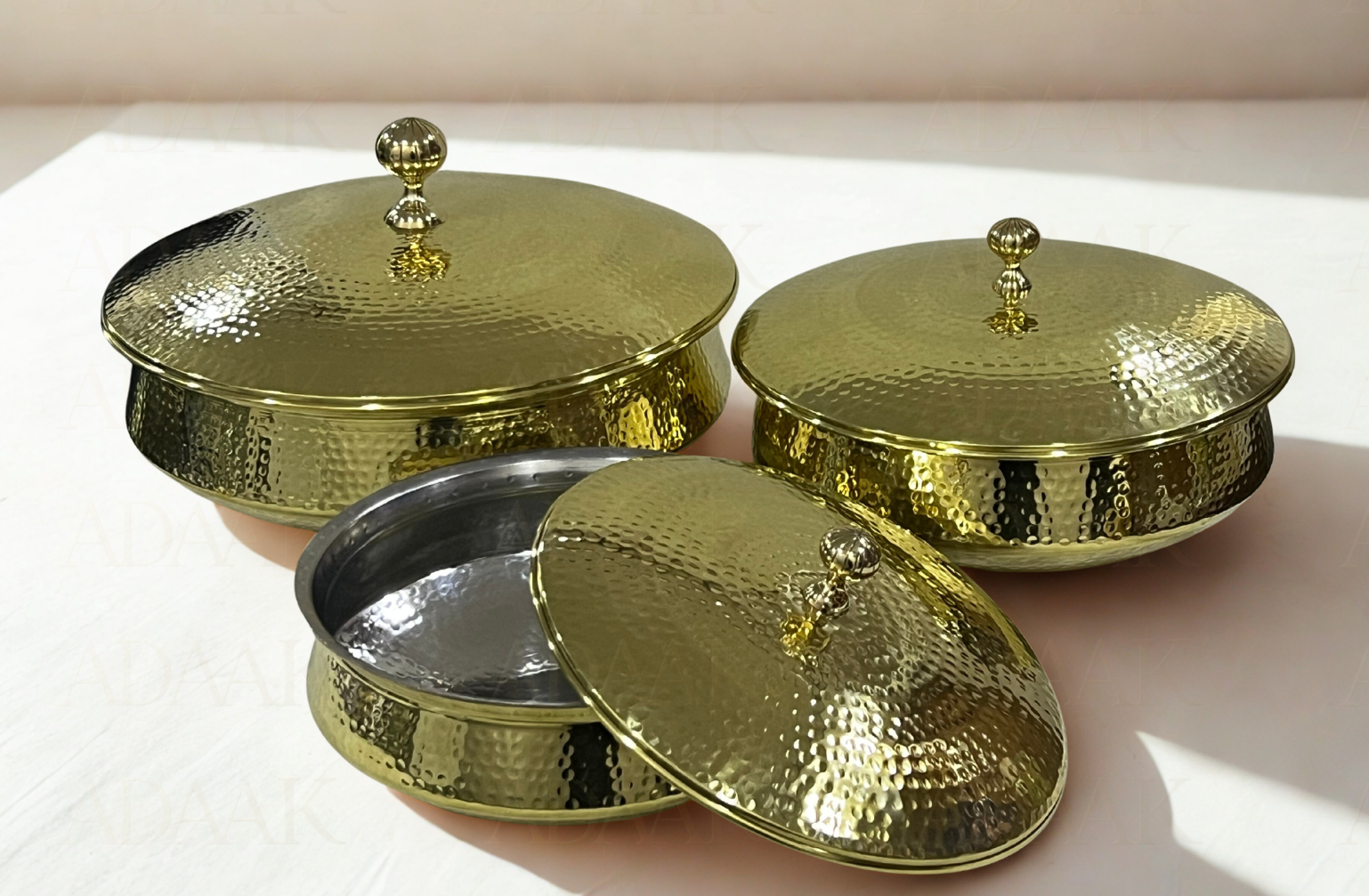 Cook and serve like royalty with this premium brass finish lagan. Featuring a wide, shallow base, it is ideal for dum cooking biryanis, kormas, and other festive delicacies. The brass finish exudes elegance, making it a stunning centerpiece for serving at special occasions. Designed to distribute heat evenly, this lagan helps lock in rich flavors and aromas, just like traditional Indian kitchens.