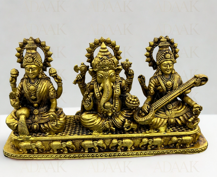 Brass Lakshmi Ganesha Saraswati Idol Set (Triad) | Wealth, Wisdom & Knowledge