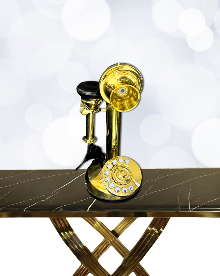Adaak specializes in premium decorative items that celebrate artistry and history. Our Rotary Candlestick Telephone Replica is a masterpiece of precision and shine, fabricated from high-quality, solid brass. The meticulous recreation of its vintage features and its radiant golden finish make it stand out as more than just decor—it's a nostalgic statement piece. By choosing this Decorative Brass Telephone from Adaak, you acquire an authentic-looking historical object designed to elevate your interior space with timeless elegance.